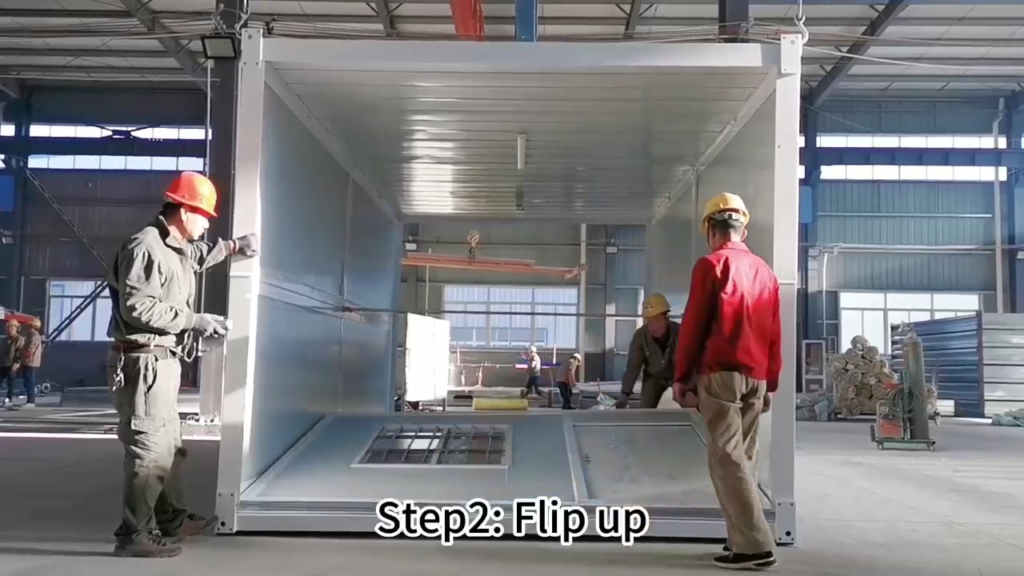 5.8*2.43*2.51 meter 3 steps folding container house. EXW Price: 2600usd/set. 12 sets in 40HQ container.