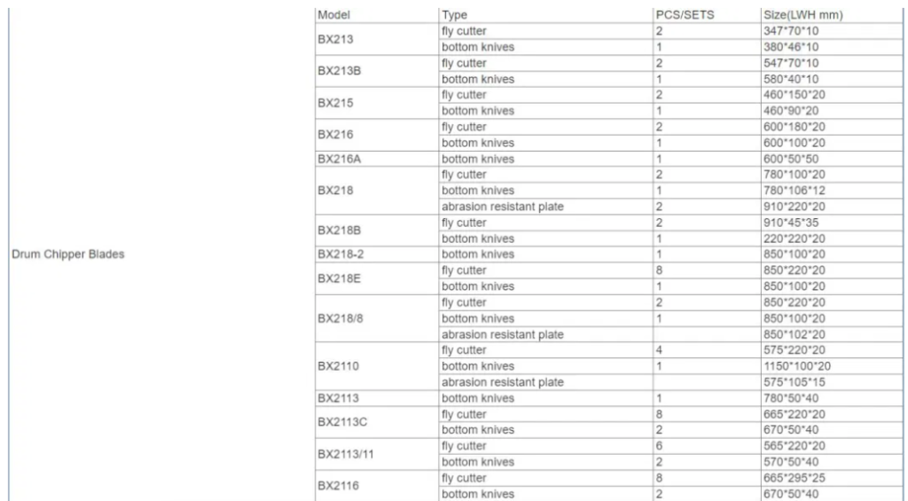Application: BX-series drum chipper and disc chipper including BX1710, BX1212, BX218D, BX216, BX218, BX2110, BX2113, BX2116, etc.